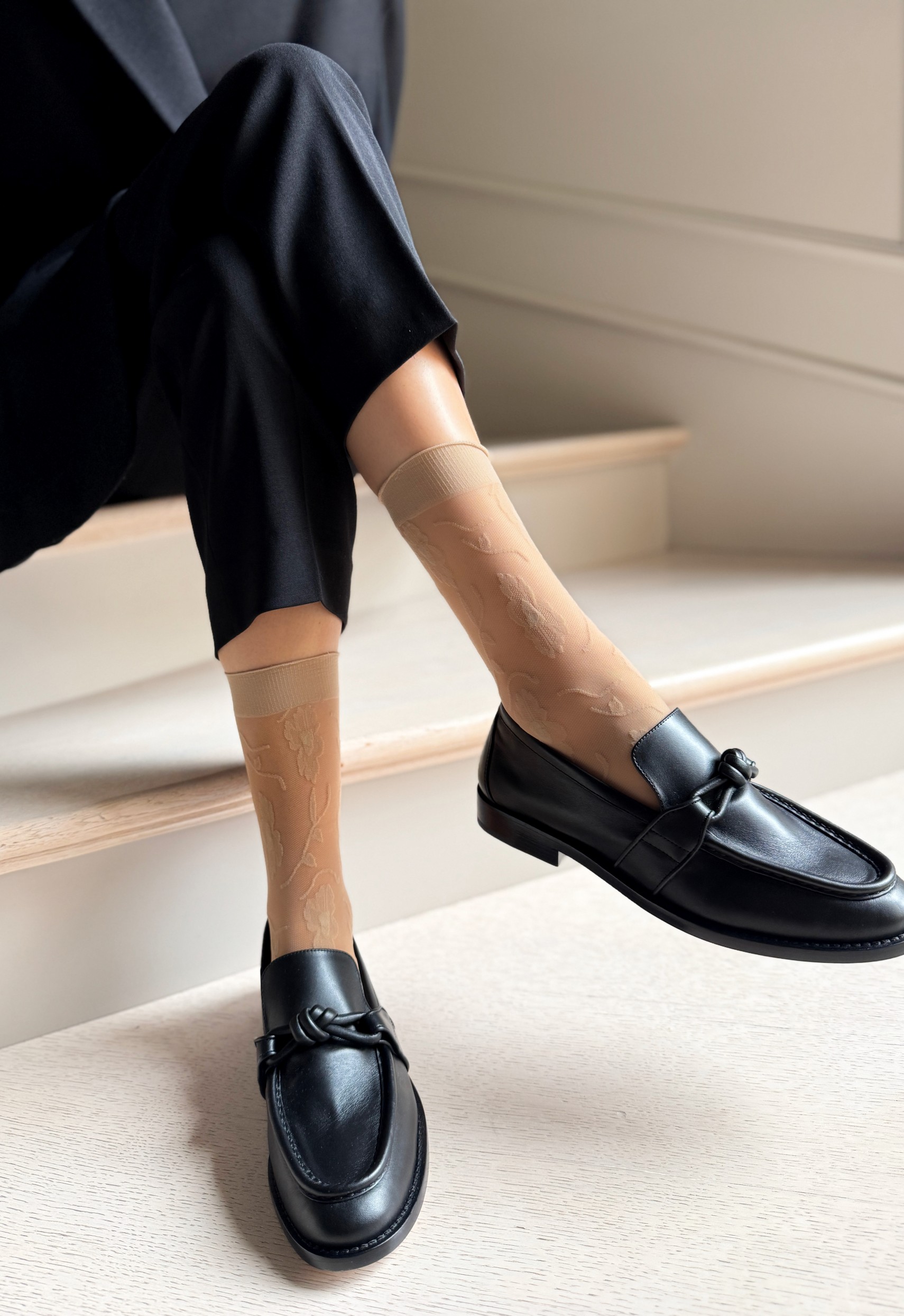 Whether you want to soften minimalist outfits or add elegance to a fashion-forward look, Fiore socks by Veneziana are a detail that elevates your wardrobe with ease.