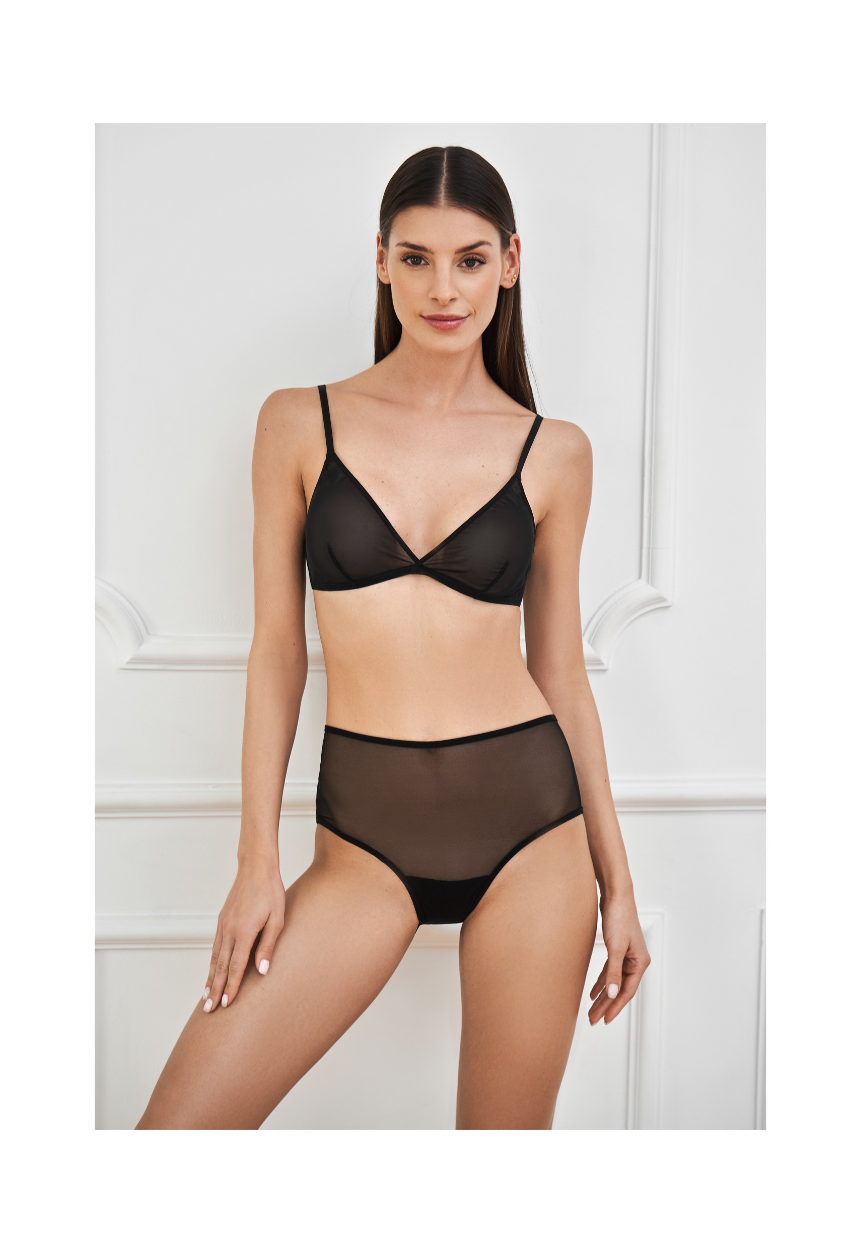 Sensuale panties by Veneziana Nuova are delicate women’s briefs crafted in sheer black tulle, available in a smooth version or adorned with subtle golden dots. Their refined cut makes them a perfect choice for women who appreciate minimalist elegance with a sensual twist.